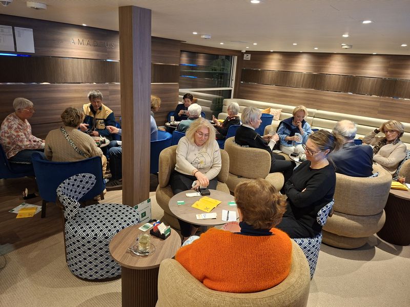 Il nous semble que c’était hier seulement que nous foulions pour la première fois le pont du MS Amadeus Amara. À peine les amarres larguées, l’esprit du jeu s’emparait déjà de nous : dès le premier soir, les cartes étaient distribuées pour le premier des cinq tournois de la semaine.