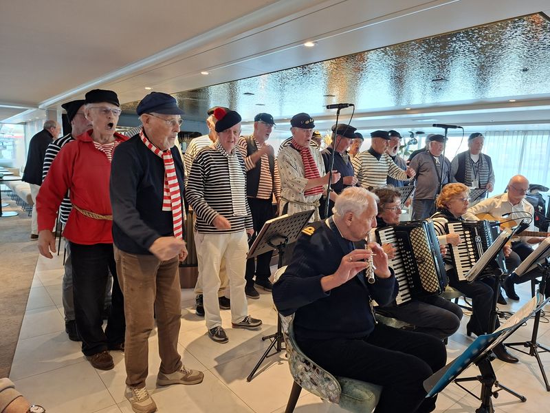 Notre périple s’est achevé en beauté par une immersion dans les canaux d’Amsterdam et une visite mémorable du Rijksmuseum, gardien des trésors du Siècle d’Or. Pour clore cette aventure humaine et ludique, le dernier soir nous a réservé des émotions fortes : l’énergie d’un concert traditionnel de Sea Shanty (chants de marins), suivi du prestigieux dîner du Commandant, une fête autant pour les yeux que pour les papilles.