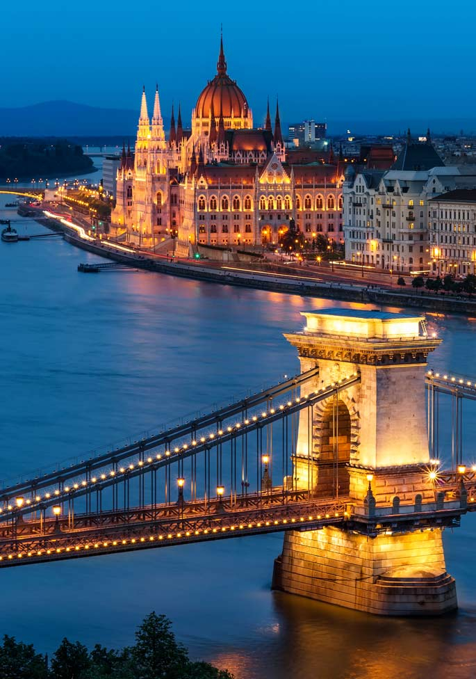 Le matin, visite guidée de la « perle du Danube ». Promenade côté Buda, la ville historique, à travers les ruelles du château, l’église Matthias (vue extérieure), le Bastion des Pêcheurs. De l’autre côté du Danube, découverte de Pest, la ville moderne, avec la place des Héros et le Bois de Ville. Déjeuner à bord. Après-midi libre ou participation à l’excursion optionnelle. Dîner à bord.