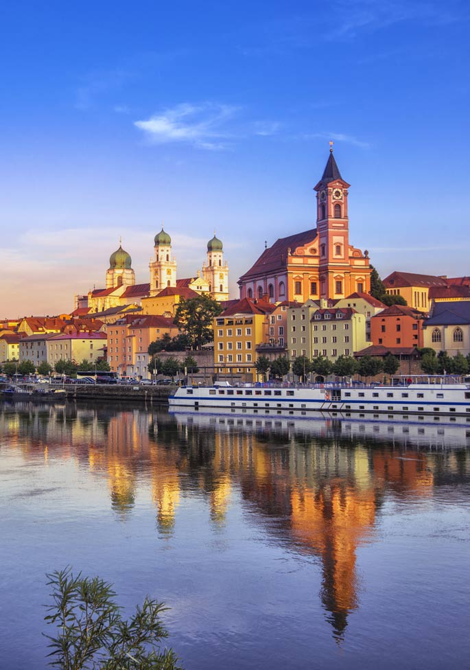 Départ sur vol régulier pour Munich. Transfert à Ratisbonne et tour de ville de cette cité de charme qui abritait jadis la diète d’Empire. Elle peut légitimement s’enorgueillir de son Hôtel de ville et de ses demeures patriciennes mais aussi de sa cathédrale gothique dont le chœur d’enfants est mondialement célèbre. Transfert à Passau.